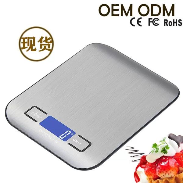 This Meraclet stainless steel square kitchen scale features a sleek brushed metal platform and a modern blue LCD display. It offers high precision measurement, easy-to-use buttons, tare function, and multiple unit conversion. The durable stainless steel surface is resistant to corrosion and easy to clean, making it suitable for both daily cooking and professional baking needs.